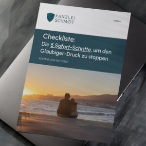 „Die 5 Sofort-Schritte, um den Gläubiger-Druck zu stoppen.“ Erhalten Sie sofort hilfreiche Tipps, um Ihre Situation zu stabilisieren.